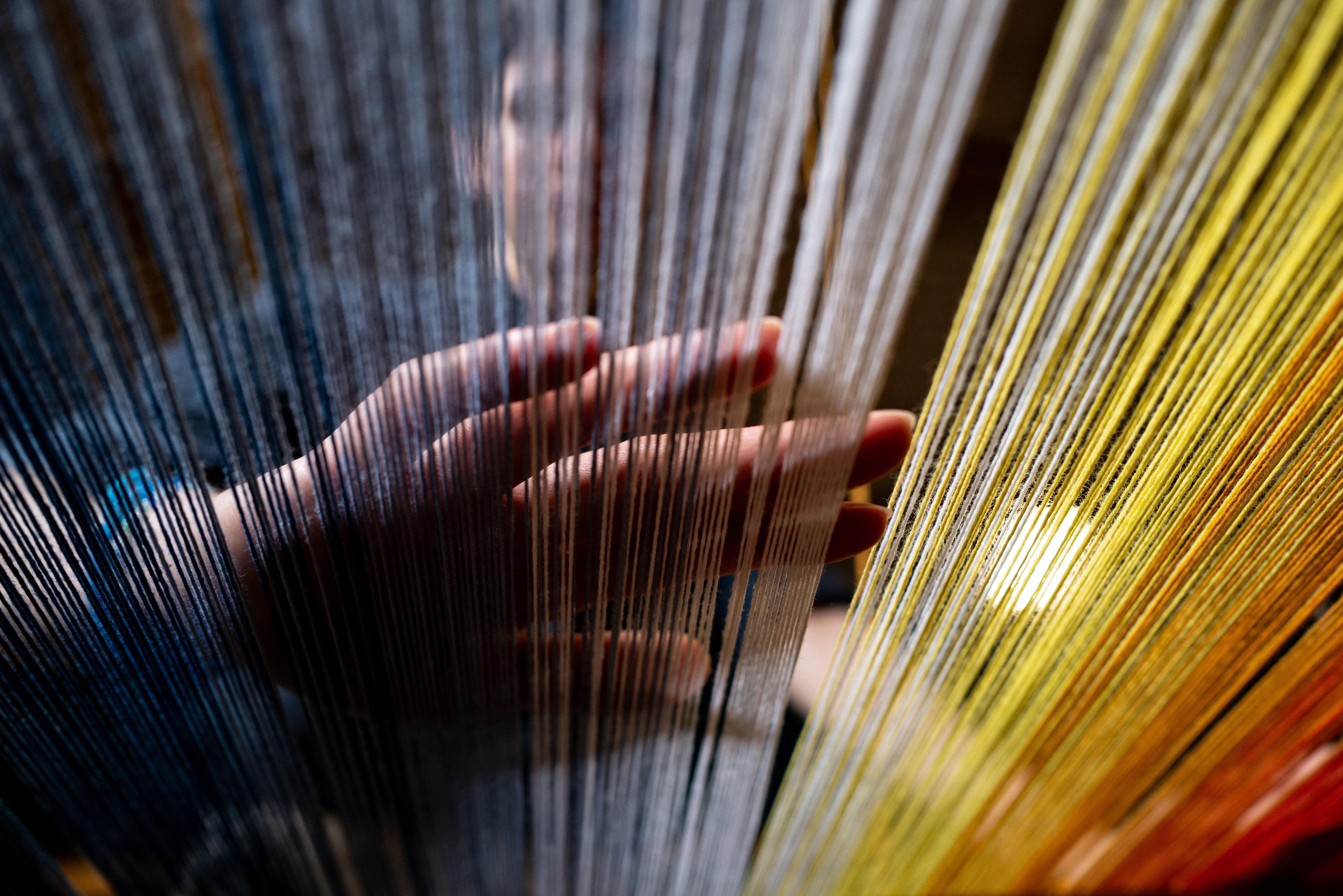 Co-designed by two students with differing interests and skill sets, these placemats celebrate technical discovery and the beauty of long summer days. Dani 25’ works as a camp counselor every summer and has been inspired by images she’s taken of dramatic summer sunsets. Dylan ’25 is eager to learn as much about the craft of weaving as possible, focusing on color blending and structure for this project. Together they developed overlapping spectrums of colors to represent the rising and setting of the summer sun.